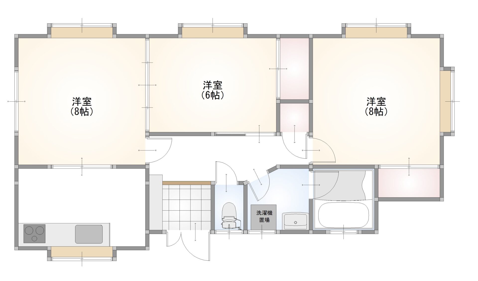 バス・トイレ別独立洗面台室内洗濯機置場駐車場あり追い焚きシステムキッチンフローリング二重サッシダブルロック全室照明付キッチン窓