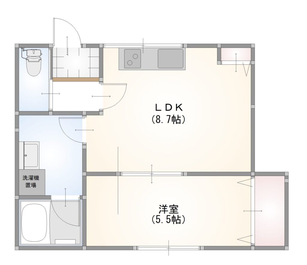 間取り:1LDK(LDK8.7帖・洋室5.5帖)